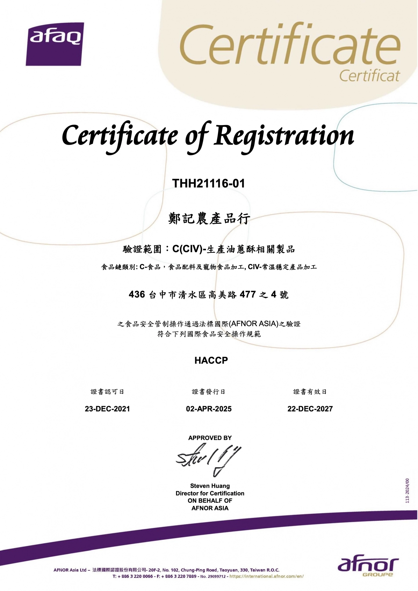 Factory / Manufacturing Site: Cheng-Chi Agricultural Product Co.