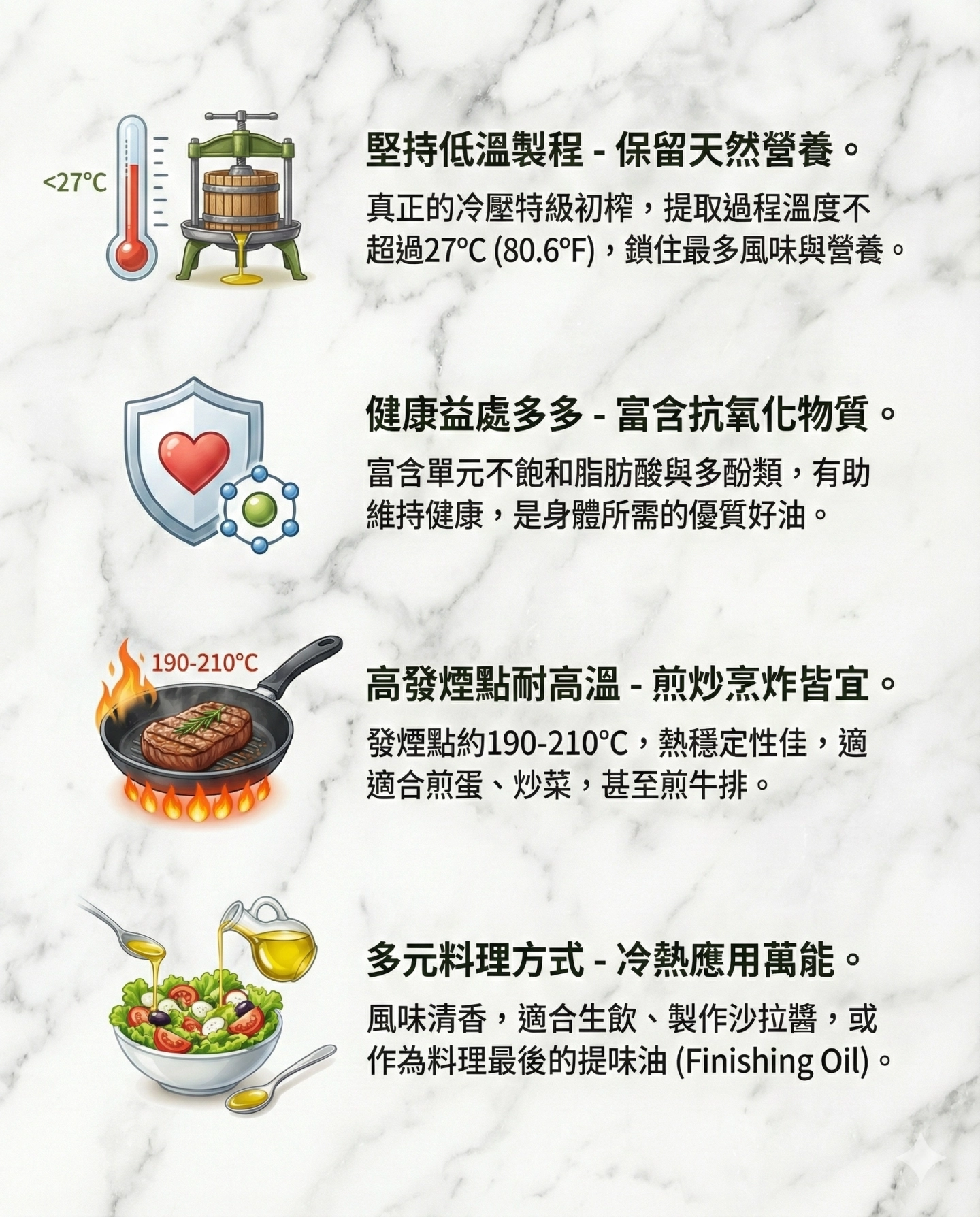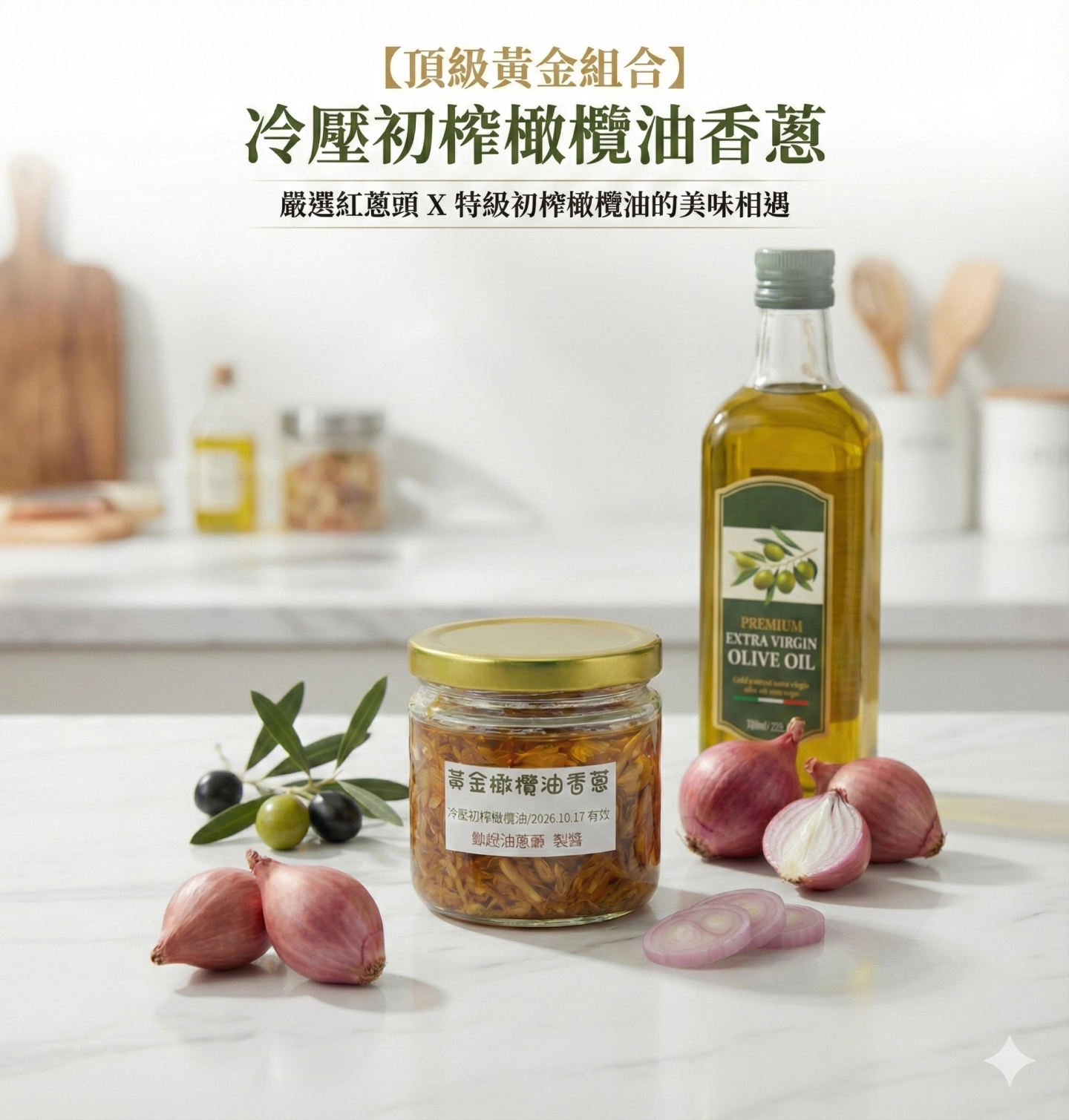 使用冷壓初榨橄欖油製作,清爽不油膩的油蔥,放冷藏也不會凝固。 產品特色 自然清香丶色澤金黃丶口感酥脆。 產品用途 炒菜丶煮湯、拌麵丶油飯丶肉粽來增加香氣和提升料理的風味。 產品成分 冷壓初榨橄欖油丶紅蔥頭丶喜馬拉雅山岩鹽 淨重 / 規格 160公克 保存方式 常溫陰涼乾燥處,避免陽光直射和高溫。 保存期限 一年 產 地 台灣 過敏源警告 無